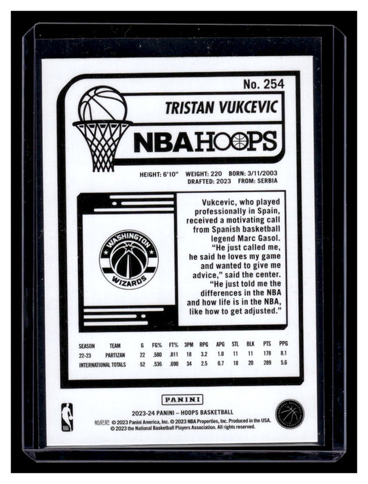 2023-24 NBA Hoops #254 Tristan Vukcevic Rookie RC (Washington Wizards)