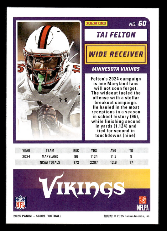 2025 Score Rookies #60 Tai Felton (Minnesota Vikings)