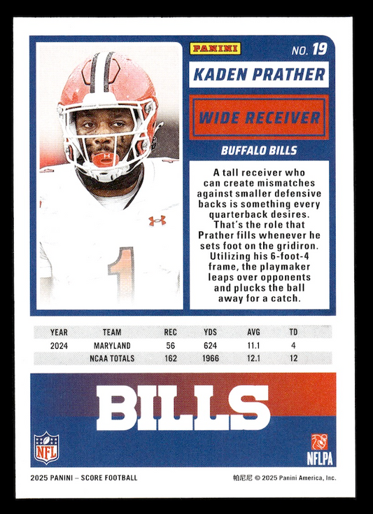 2025 Score Rookies #19 Kaden Prather (Buffalo Bills)