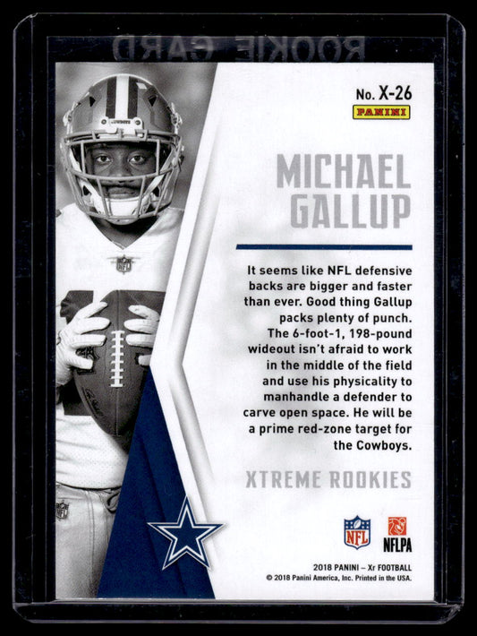 2018 Panini XR Xtreme Rookies #X-26 Michael Gallup #'d /99 (Dallas Cowboys)