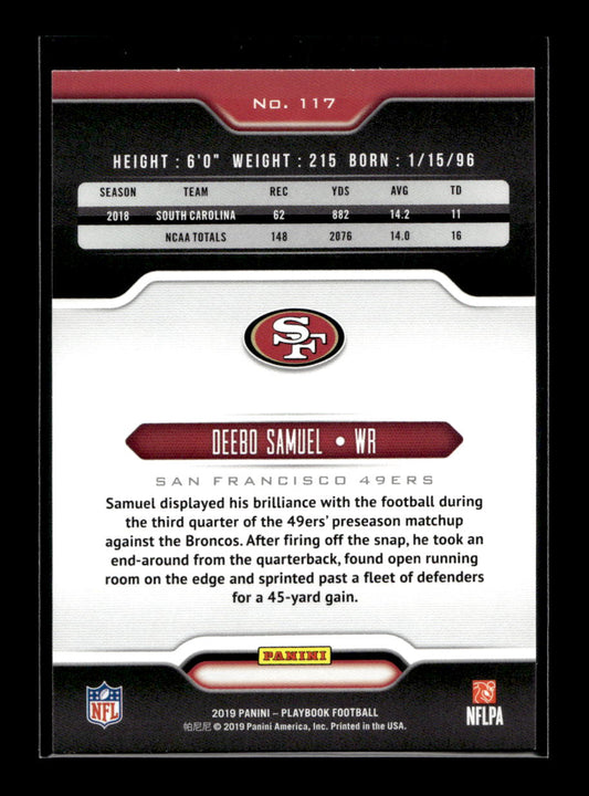 2019 Panini Playbook #117 Deebo Samuel Rookie (San Francisco 49ers)