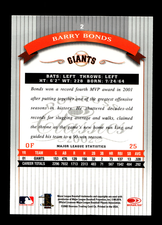 2002 Donruss Classics #2 Barry Bonds (San Francisco Giants)