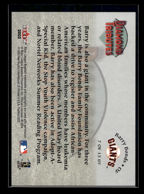 2002 Fleer Tradition Diamond Tributes #7 Barry Bonds (San Francisco Giants)