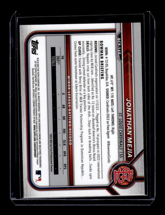 2022 Bowman Chrome #BCP-168 Jonthan Mejia RC Rookie (St. Louis Cardinals)