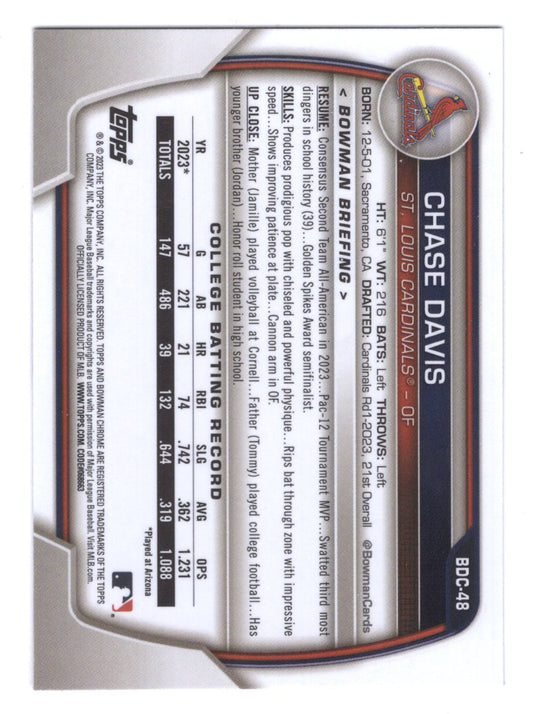 2023 Bowman Draft Chrome #BDC-48 Chase Davis 1st Bowman (Cardinals)