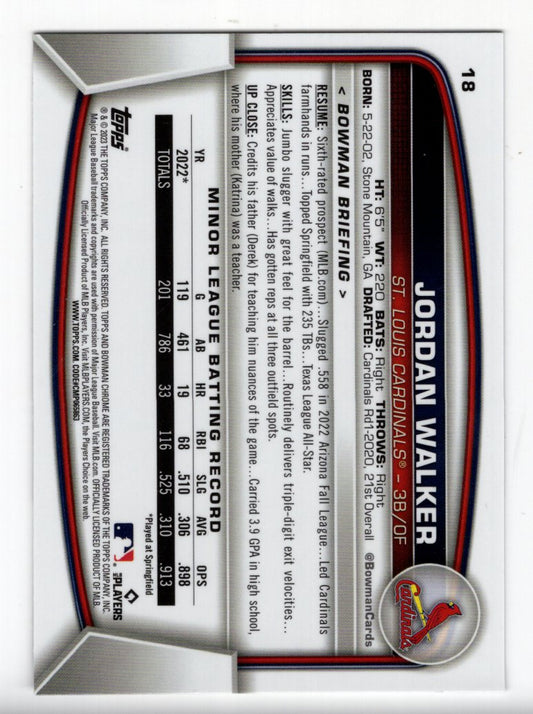 2023 Bowman Draft Chrome Jordan Walker Rookie #18 (Cardinals)
