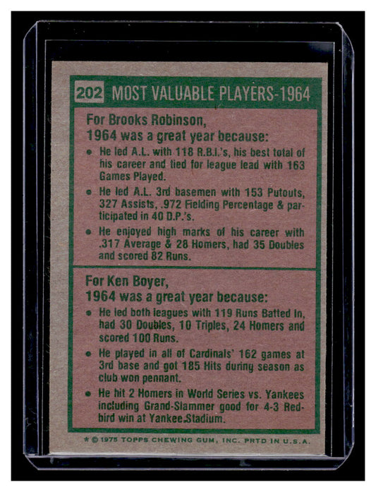 1975 Topps #202 "1964 MVPs" Brooks Robinson - Orioles / Ken Boyer - Cardinals