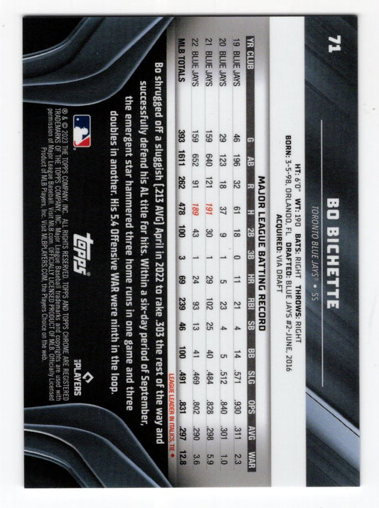 2023 Topps Chrome Black Bo Bichette #71 Orange Refractor #'d 22/25 (Blue Jays)