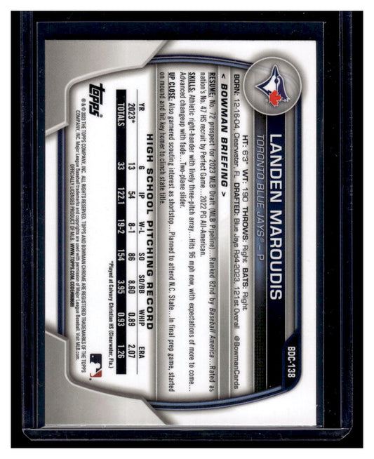 2023 Bowman Draft Chrome #BDC-138 "Aqua Lunar Crater Refractor" #'d /125 (Toronto Blue Jays)